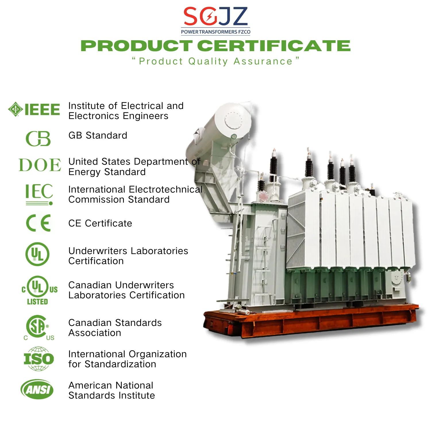 محولات SGJZ 138KV 132KV تلبي بالكامل معايير GB 6451، IEC 60076، AS NZS 60076، CSAC88-16، ANSI/IEEE C57.12.00، GOST R 52719، EN60076. فريق الهندسة المحترف في SGJZ يمتلك خبرة في تصميم محولات المشاريع. وفقًا لاحتياجاتك ومتطلباتك الفنية، نقدم لك الحل الأمثل للمحولات.